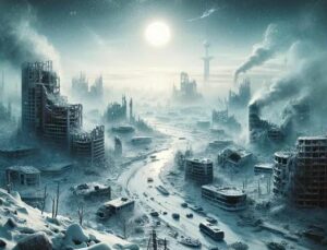 The emissions from fires caused by nuclear detonations could create significant disruptions across the physical Earth system. The response of global climate to a nuclear exchange would occur on a range of timescales, involving processes ranging from weeks to over a decade. Beginning with the most rapid effects, particulate loading in the upper atmosphere would immediately decrease solar radiation reaching Earth’s surface, with effects potentially saturating (not scaling linearly) once smoke optical depth exceeds certain thresholds. Stratospheric ozone would be depleted by injected nitrogen oxides and smoke, leading to increased ultraviolet radiation reaching Earth’s surface with subsequent ecosystem damage. Temperature changes would follow radiative alterations, with land surfaces cooling rapidly while oceans respond more slowly, potentially persisting for decades after smoke particles have cleared. Hydrologic cycle disruptions would occur within 10–14 days as altered radiation and surface cooling change radiative-convective equilibrium, affecting rainfall patterns and freshwater availability. Ocean circulation would be disrupted through changes in wind stress, thermohaline convection, and surface salinity from altered freshwater inputs. Cryosphere impacts would result from changes in heat transport from equatorial to polar regions and from carbonaceous aerosol deposition on snow and ice surfaces, potentially triggering long-lasting ice age conditions through albedo feedback mechanisms.