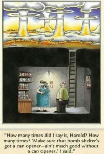 Thus, most of the world’s people are threatened with starvation following a full-scale nuclear war. The number that would survive depends on how much food is in storage and how much could be produced locally. Earlier studies of various countries around the world conclude that even with extremely optimistic assumptions of perfect distribution systems within countries, 8 that each person who will survive becomes a vegetarian and eats the minimum needed for survival, and the others waste none of the food, that nations in Asia, Africa and South America could only last 1–2 months. In many nations, people would be reduced to a hunter/gatherer existence with nothing to hunt and precious little to gather.